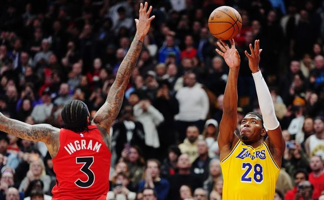 东契奇返回斯洛文尼亚去迎接自己第二个孩子的出生,湖人只能以残阵开启三连客之旅,首个对手就是高居东部第三的猛龙,历经四节鏖战,湖人凭借八村塁的三分绝杀,艰难在丰业银行球馆全身而退、带走胜利。里夫斯延续了本赛季当卢卡缺席时他就会暴走的疯狂表现,交出了44分5篮板10助攻的成绩单,成为球队取胜的第一大功臣。而詹姆斯却表现得有些糟糕,全场运动战17投仅4中,仅仅得到8分6篮板,但却送出了11次助攻,其中,也包括了最后奠定胜局的致胜一传。